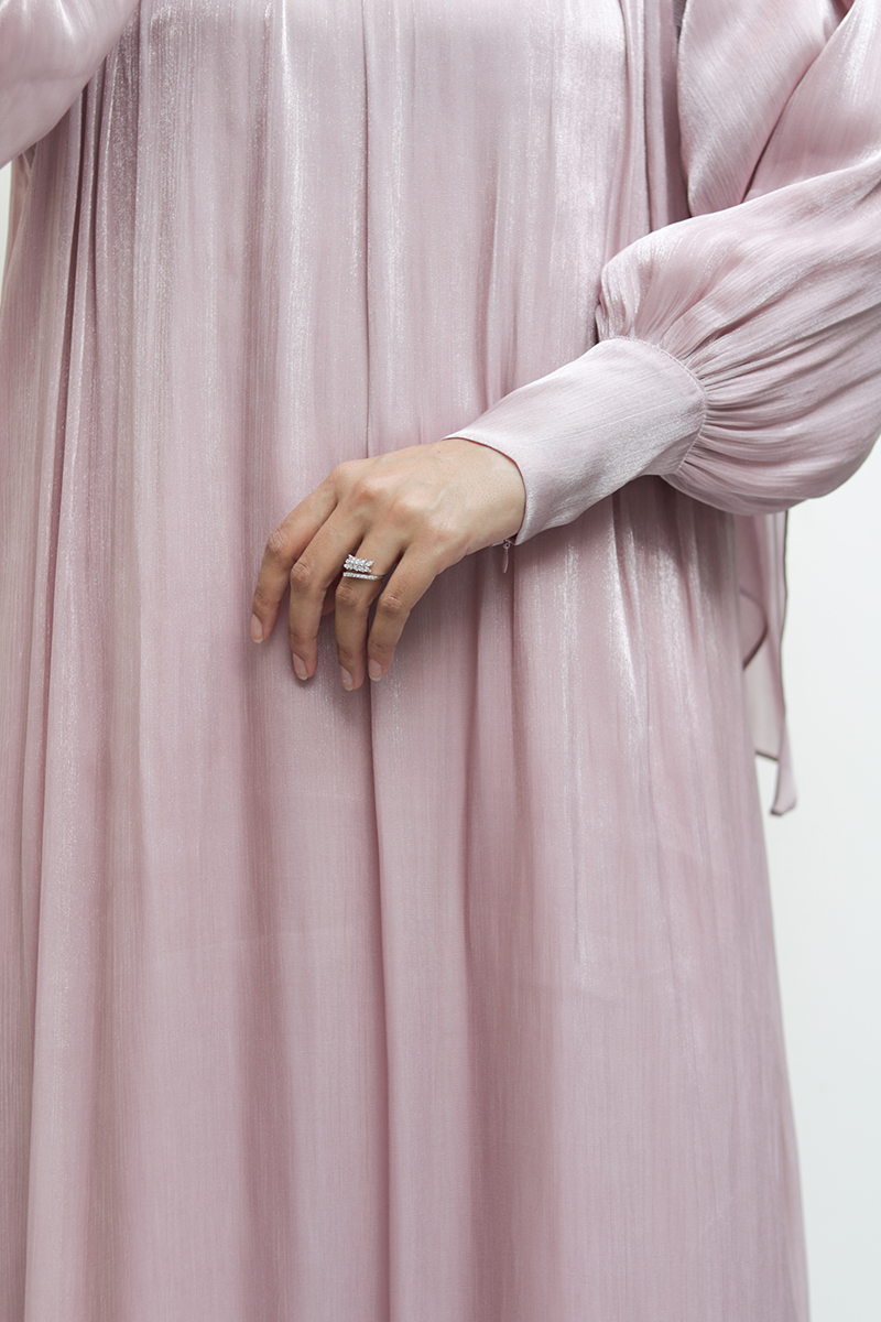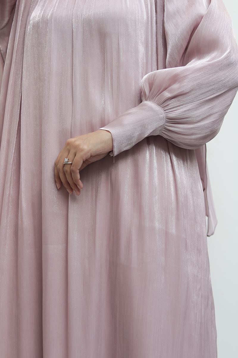 Our Dream Muse Abaya is specially designed for your most meaningful moments and occasions. Made in soft shimmer crinkle chiffon, this abaya captures the light perfectly, adding a subtle glow to your look without overwhelming it.