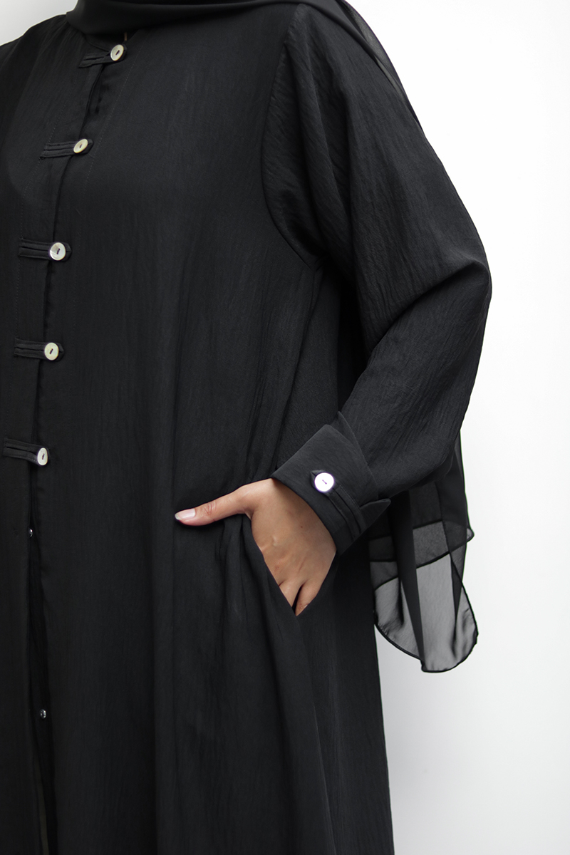 Black Button-line Abaya