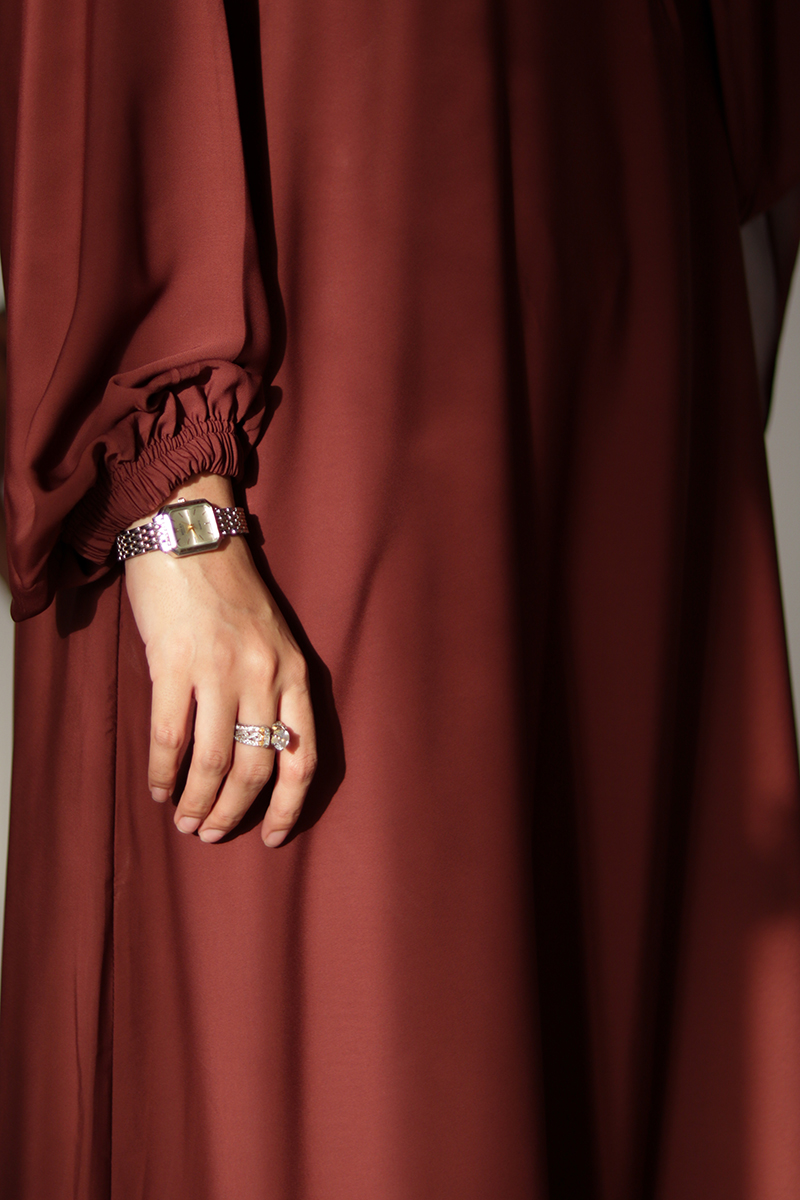 Disclaimer: Please note that colors on screen may slightly vary due to camera and photography limitations. Please allow a 0.5 to 1 inch differences in abaya sizing. Handle with care, she’s delicate! This fabric is soft and special, so be gentle with it. We recommend hand washing only and keeping it out of direct sunlight. Hijabs are hand dyed, making every piece unique. As a result, slight colour variations or streaks may be present, these are not flaws but part of the natural individuality of hand-dyed fabric.
