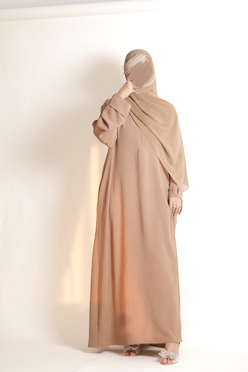Disclaimer: Please note that colors on screen may slightly vary due to camera and photography limitations. Please allow a 0.5 to 1 inch differences in abaya sizing. Handle with care, she’s delicate! This fabric is soft and special, so be gentle with it. We recommend hand washing only and keeping it out of direct sunlight. Hijabs are hand dyed, making every piece unique. As a result, slight colour variations or streaks may be present, these are not flaws but part of the natural individuality of hand-dyed fabric.