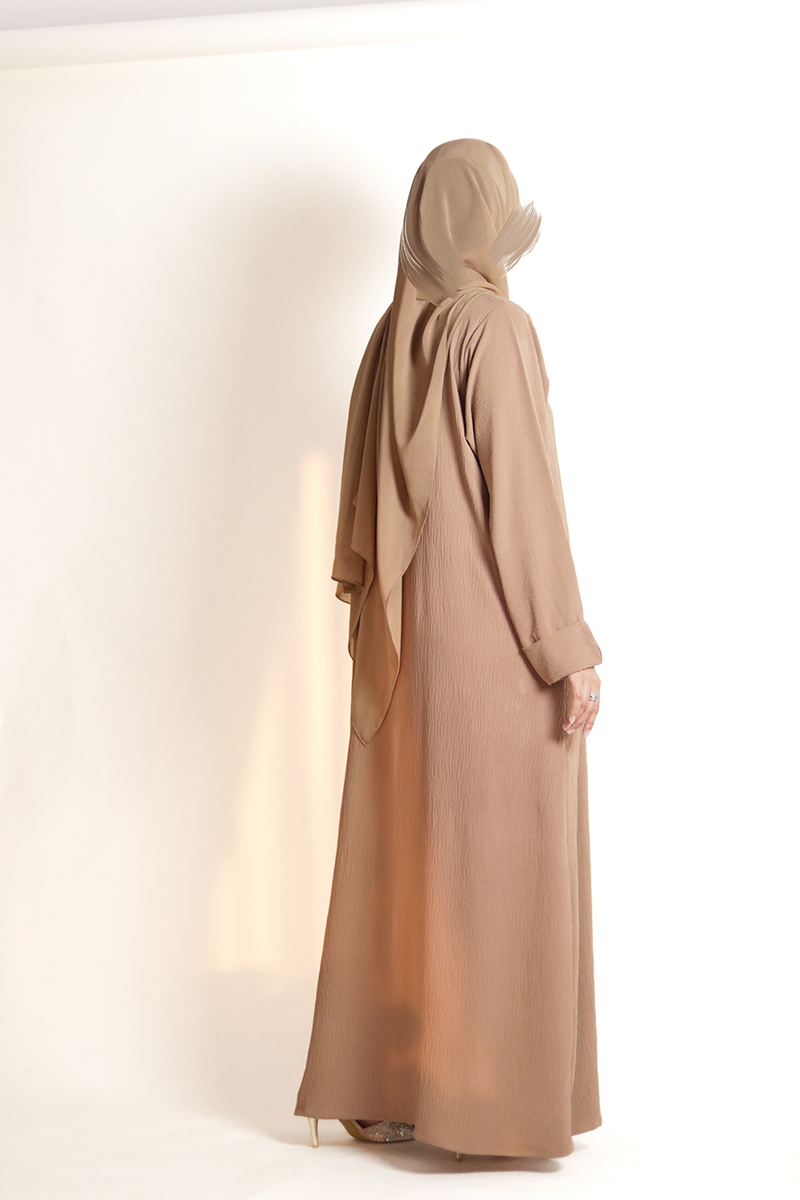 Designed to offer a smarter and slimmer look, this abaya is perfect for women who prefer a sleek silhouette. Its A-line cut elongates and flatters all body types and ensures ease of movement. This abaya is versatile and suitable for various occasions, such as Umrah/Hajj, school/university, work, or shopping.