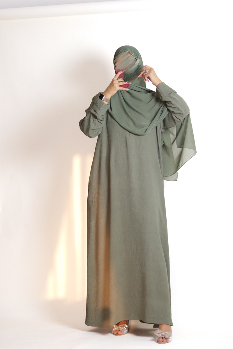 Disclaimer: Please note that colors on screen may slightly vary due to camera and photography limitations. Please allow a 0.5 to 1 inch differences in abaya sizing. Handle with care, she’s delicate! This fabric is soft and special, so be gentle with it. We recommend hand washing only and keeping it out of direct sunlight. Hijabs are hand dyed, making every piece unique. As a result, slight colour variations or streaks may be present, these are not flaws but part of the natural individuality of hand-dyed fabric.