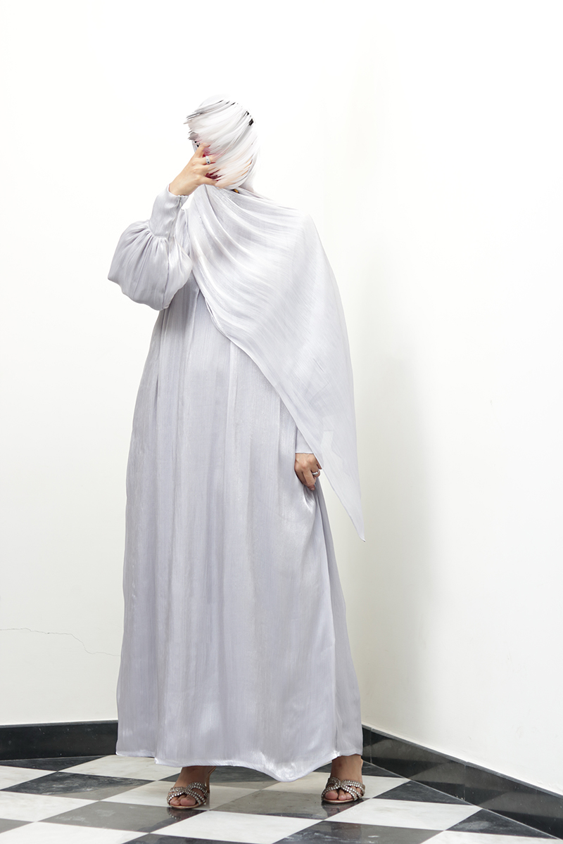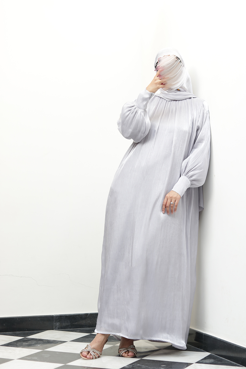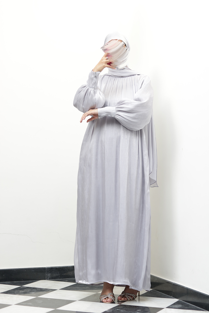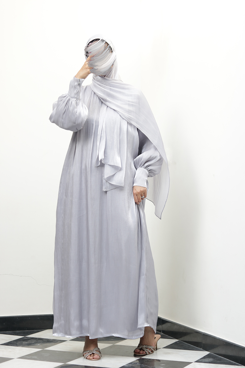 Disclaimer: Please note that due to photography and lighting limitations, product colors might vary. Due to bright studio lighting, the shimmer in this abaya shows up brighter in closeups. It’s more subtle in real.