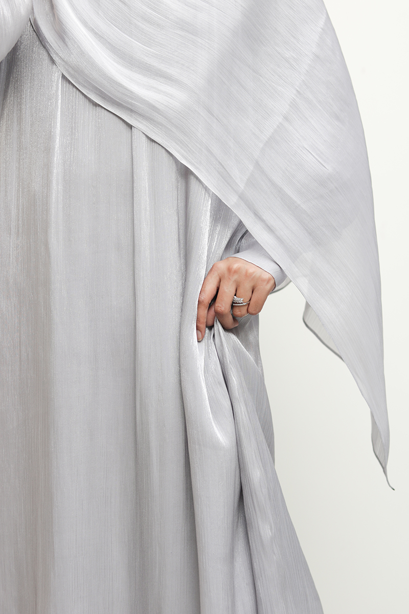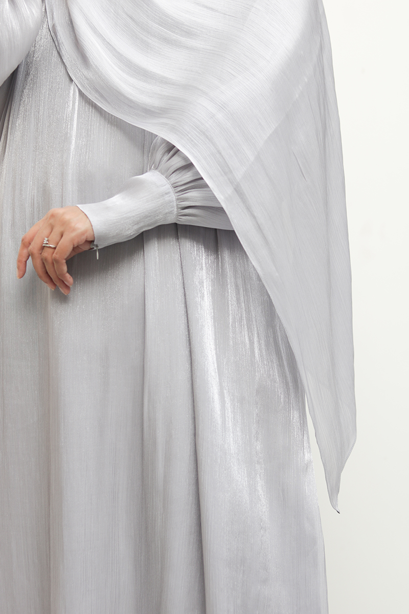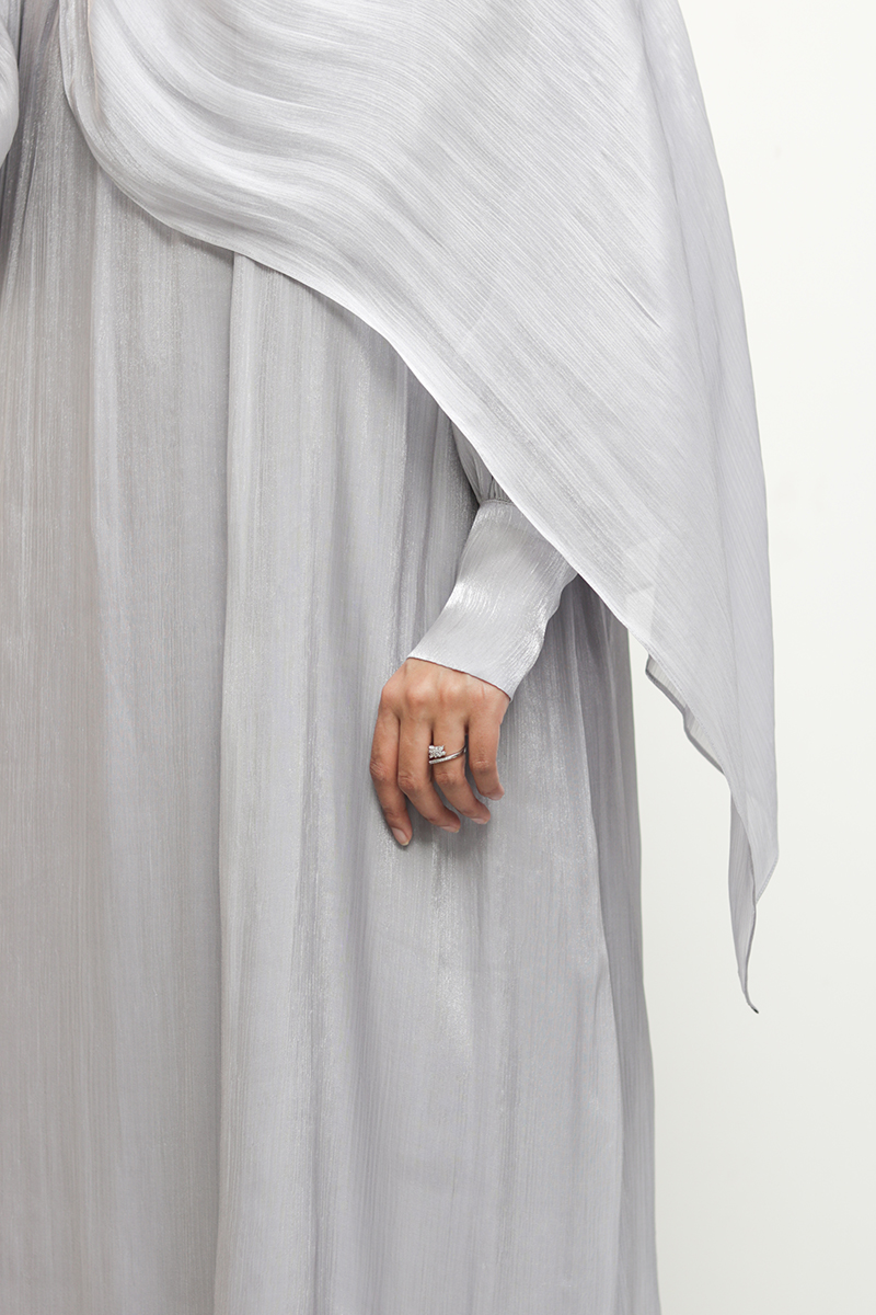 Our Dream Muse Abaya is specially designed for your most meaningful moments and occasions. Made in soft shimmer crinkle chiffon, this abaya captures the light perfectly, adding a subtle glow to your look without overwhelming it.