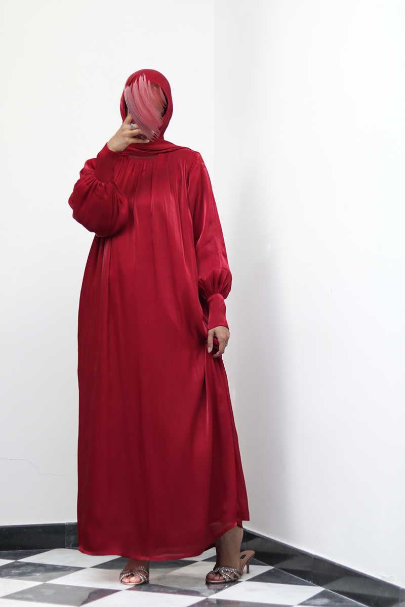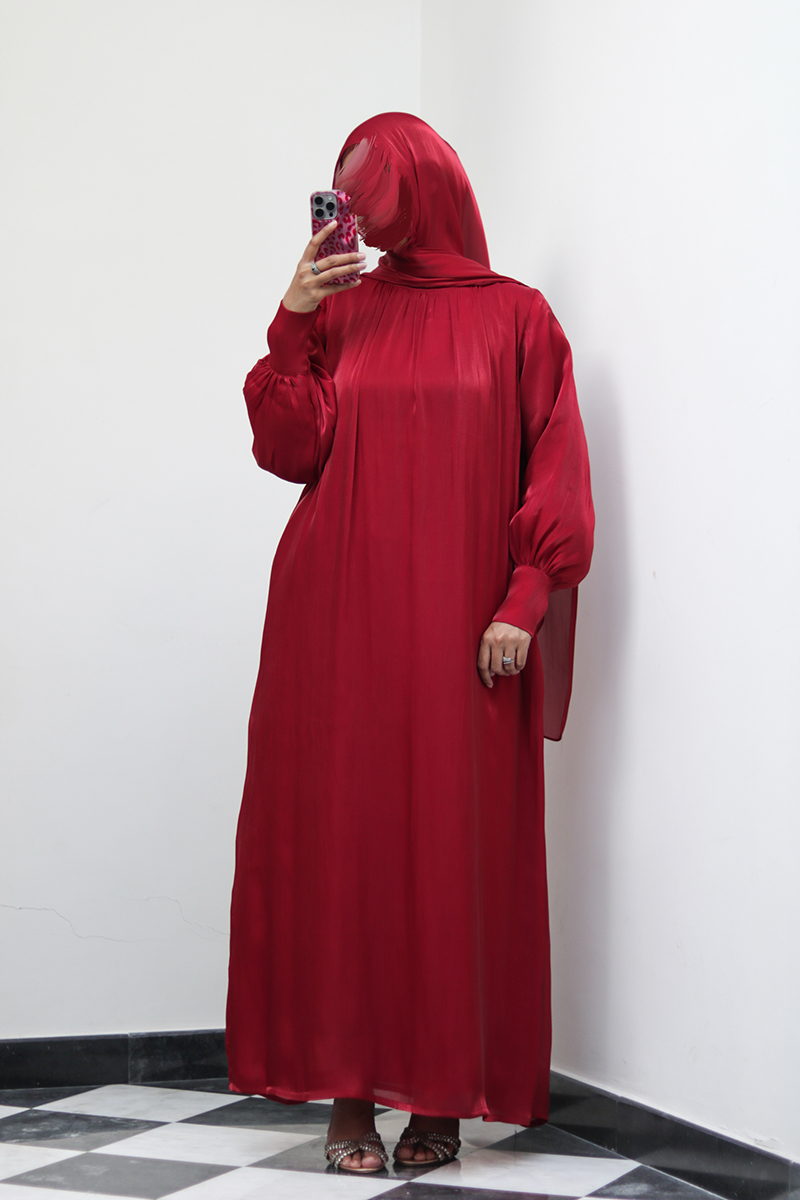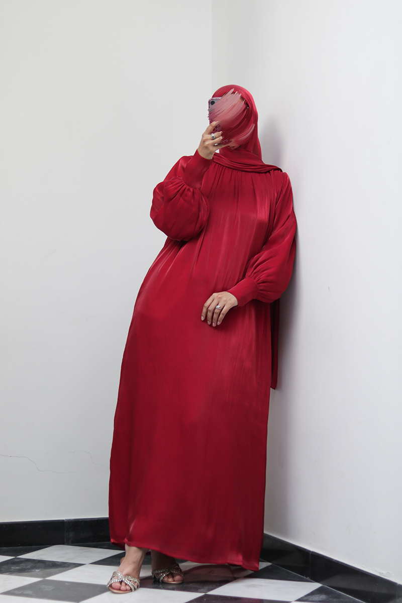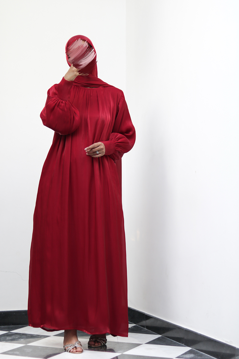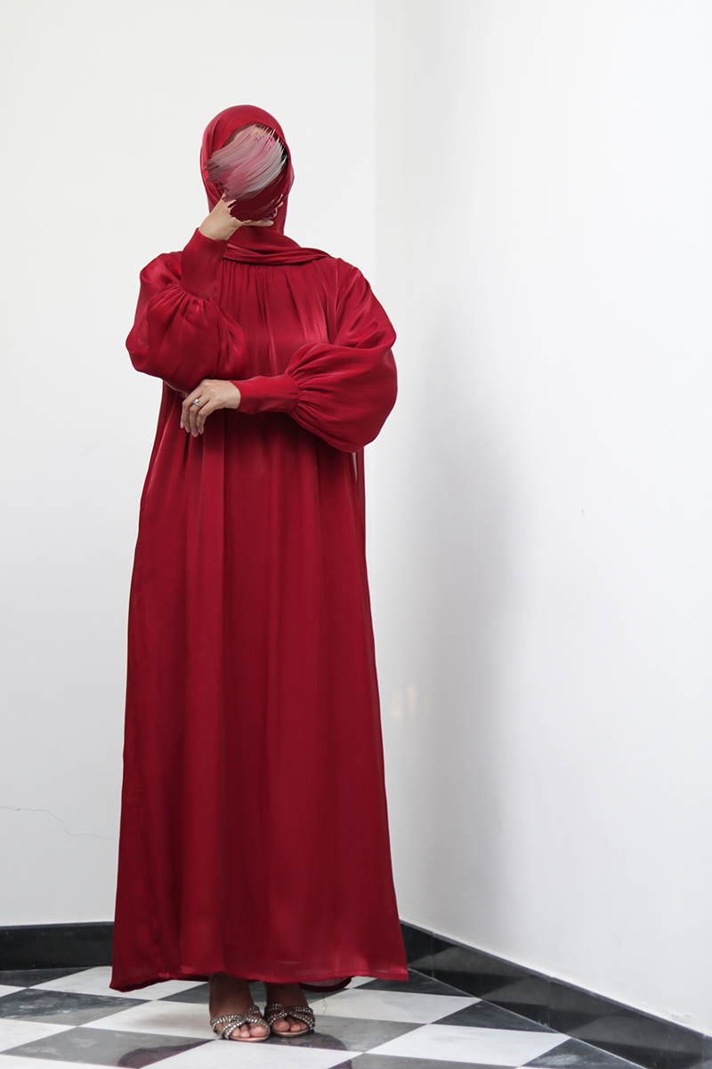 Disclaimer: Please note that due to photography and lighting limitations, product colors might vary. Due to bright studio lighting, the shimmer in this abaya shows up brighter in closeups. It’s more subtle in real.